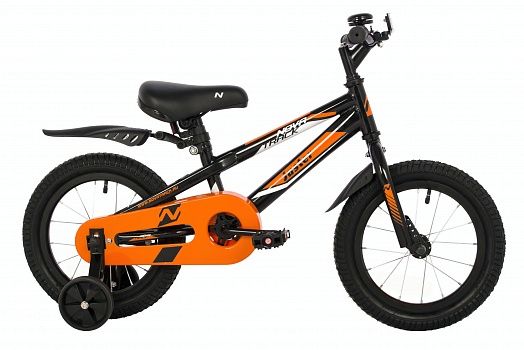 Велосипед NOVATRACK 14", JUSTER, чёрный, тормоз ножной, полная защита цепи, чёрные крылья, арт. 145JUSTER.BK23